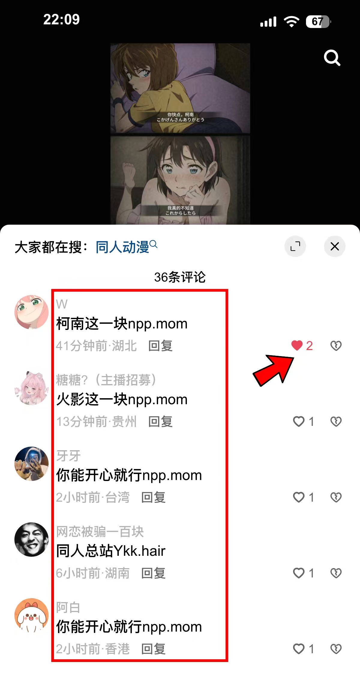 或者去搜你想看的动漫或本子或游戏名字,只要相关的视频都可以评论